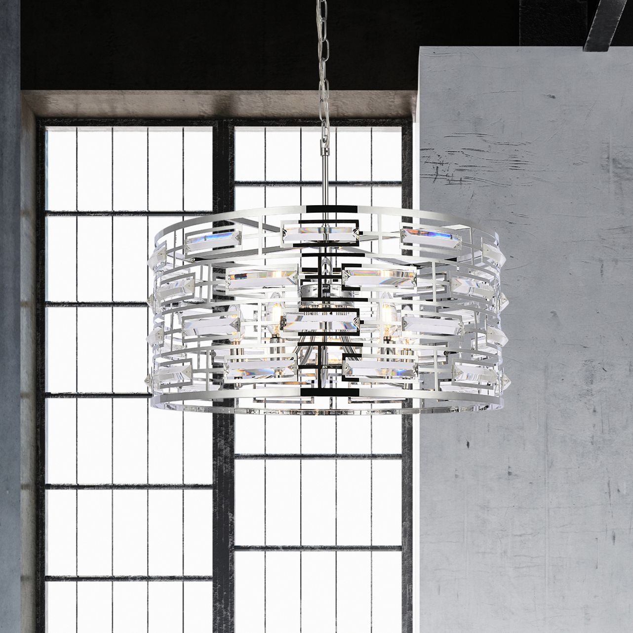 Kennedy 24" Wide Chrome 5-Light Drum Pendant