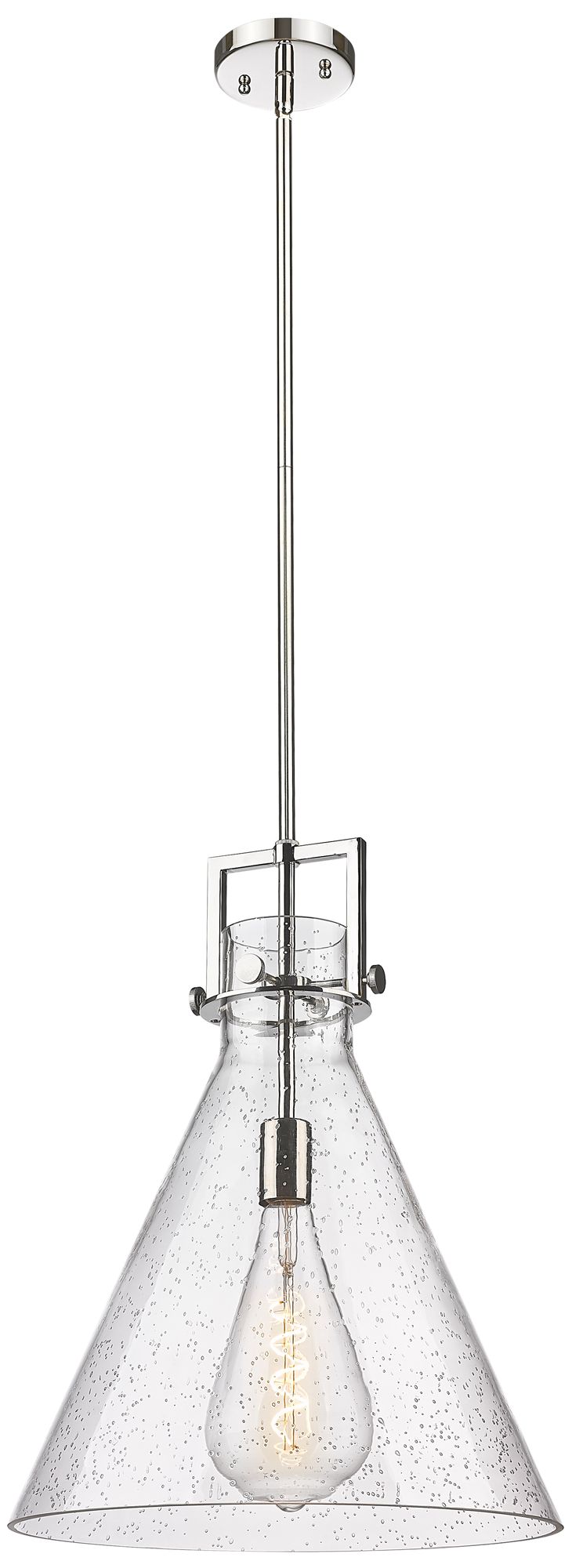 Newton Cone 16" Wide Stem Hung Polished Nickel Pendant With Seedy Shad