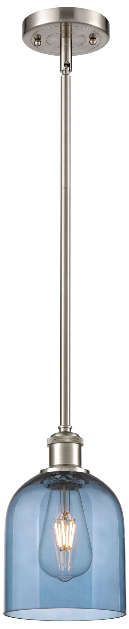 Ballston Bella 5.5"W Satin Nickel Stemmed Mini Pendant w/ Blue Shade