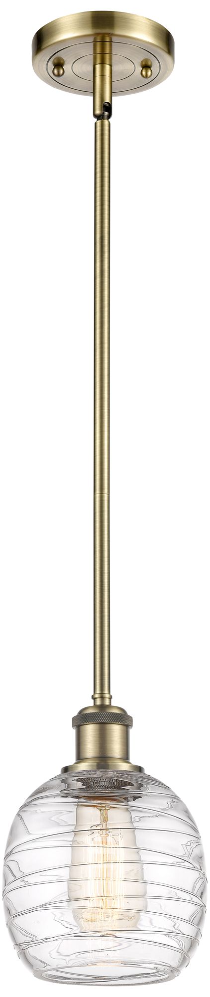 Belfast 6" Antique Brass Mini Pendant w/ Deco Swirl Shade