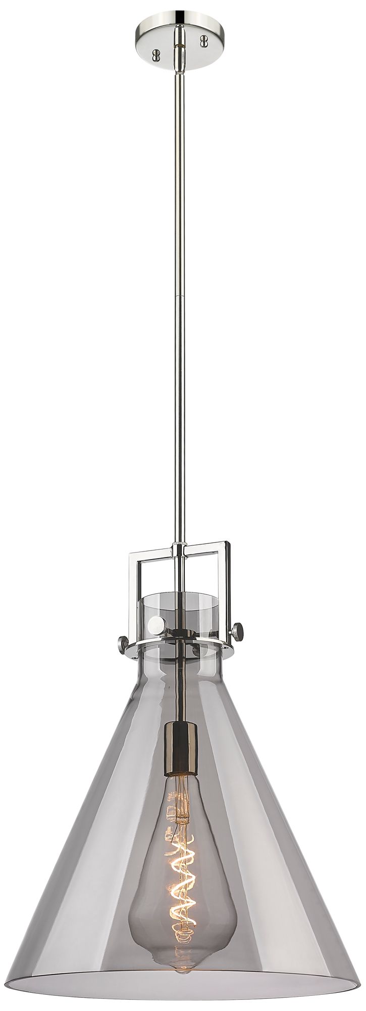 Newton Cone 16" Wide Stem Hung Polished Nickel Pendant With Smoke Shad
