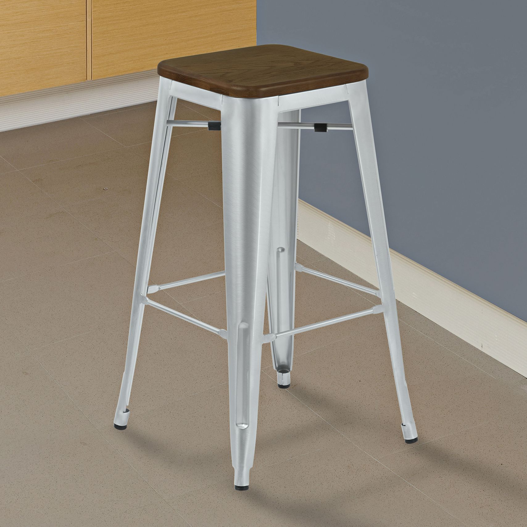 Emery 30" Walnut and Brushed Galvanized Steel Barstool