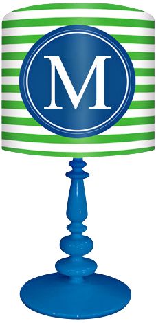 Blue And Green "M" Striped Monogram Kids Table Lamp