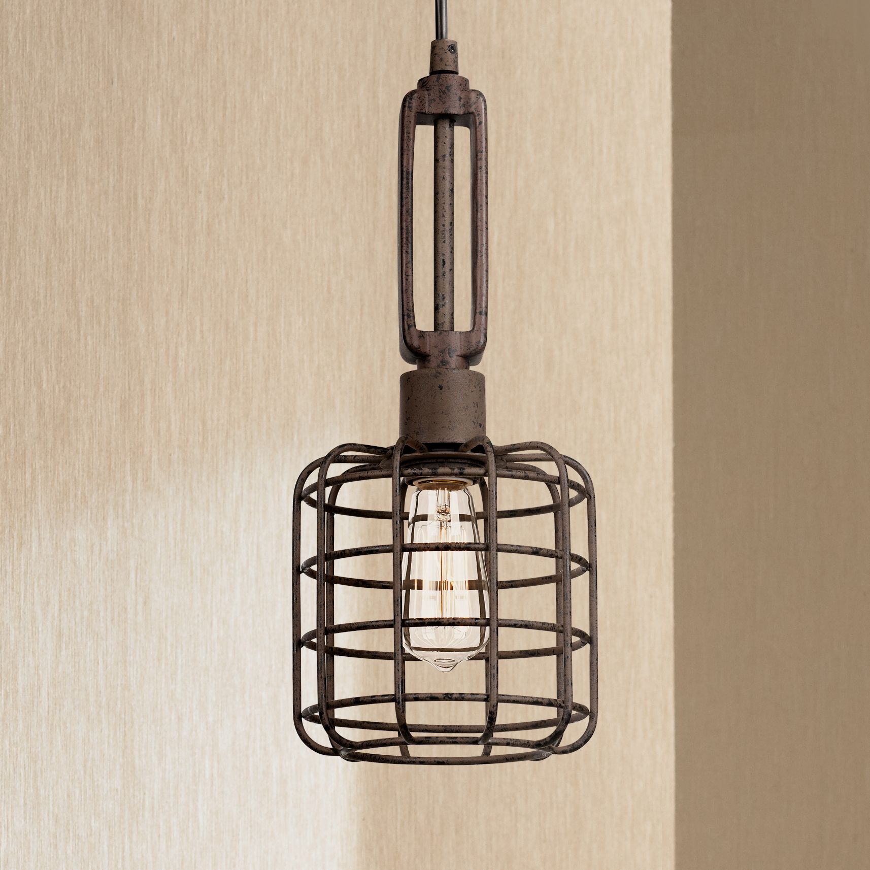 Industrial Cage 7" Wide Rust Metal Mini Pendant Light