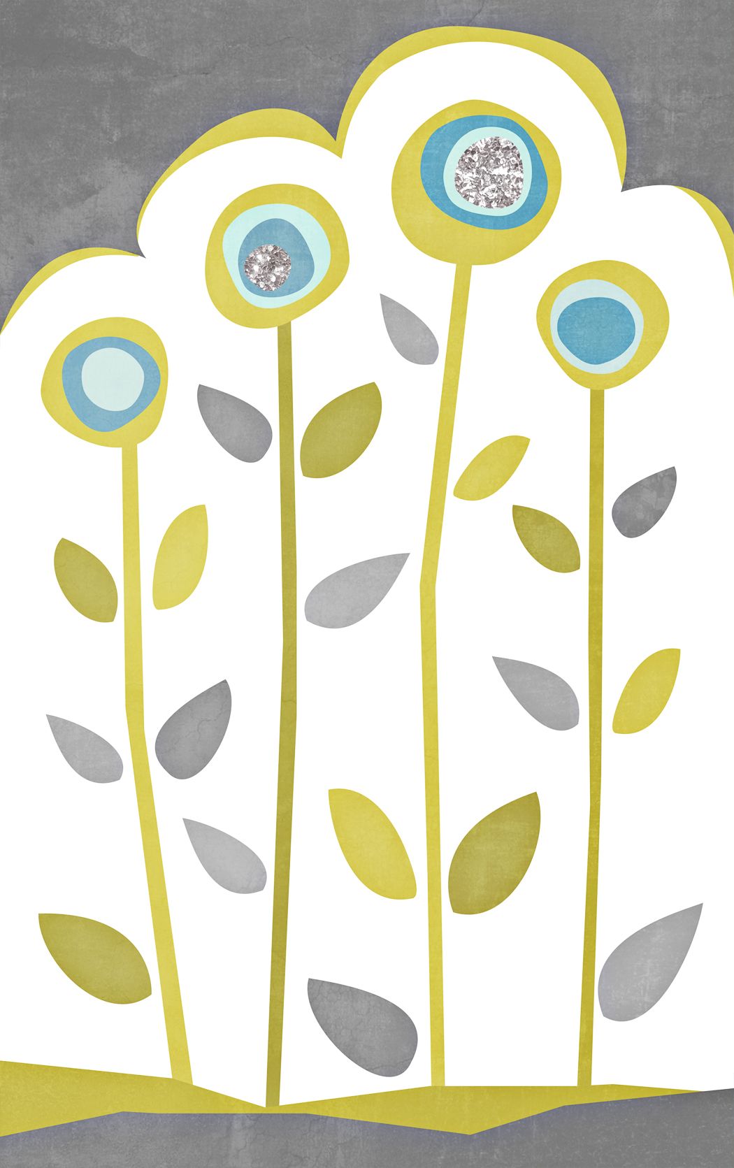 Long Stemmed Flowers I 16" High Contemporary Wall Art