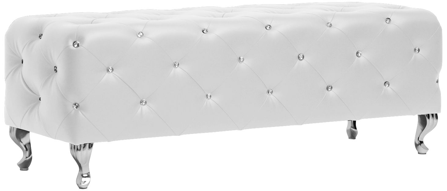 Stella 54" Wide Crystal Tufted Contemporary White Bench