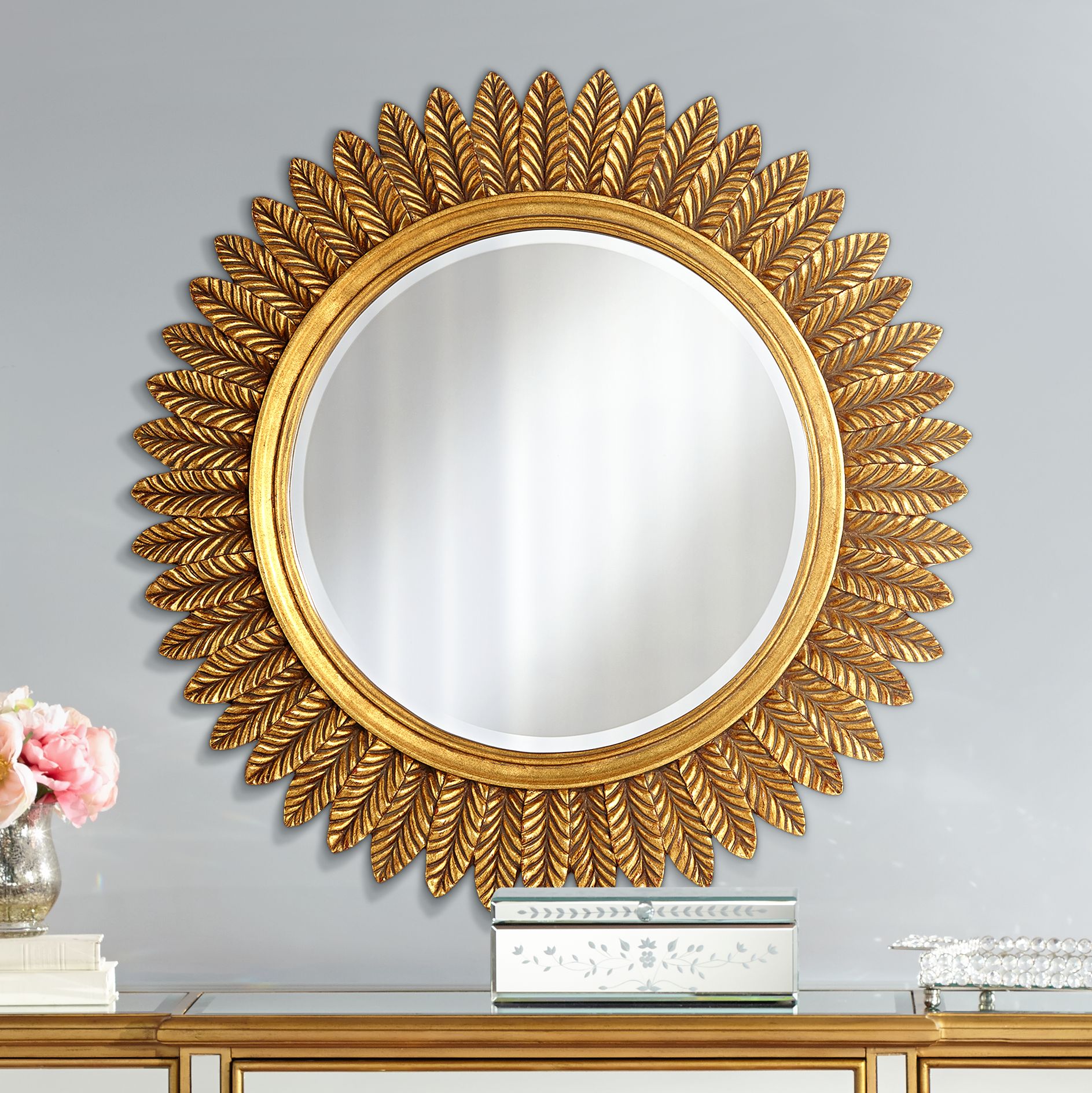 Caesar Antique Gold Leaves 32" Round Mirror