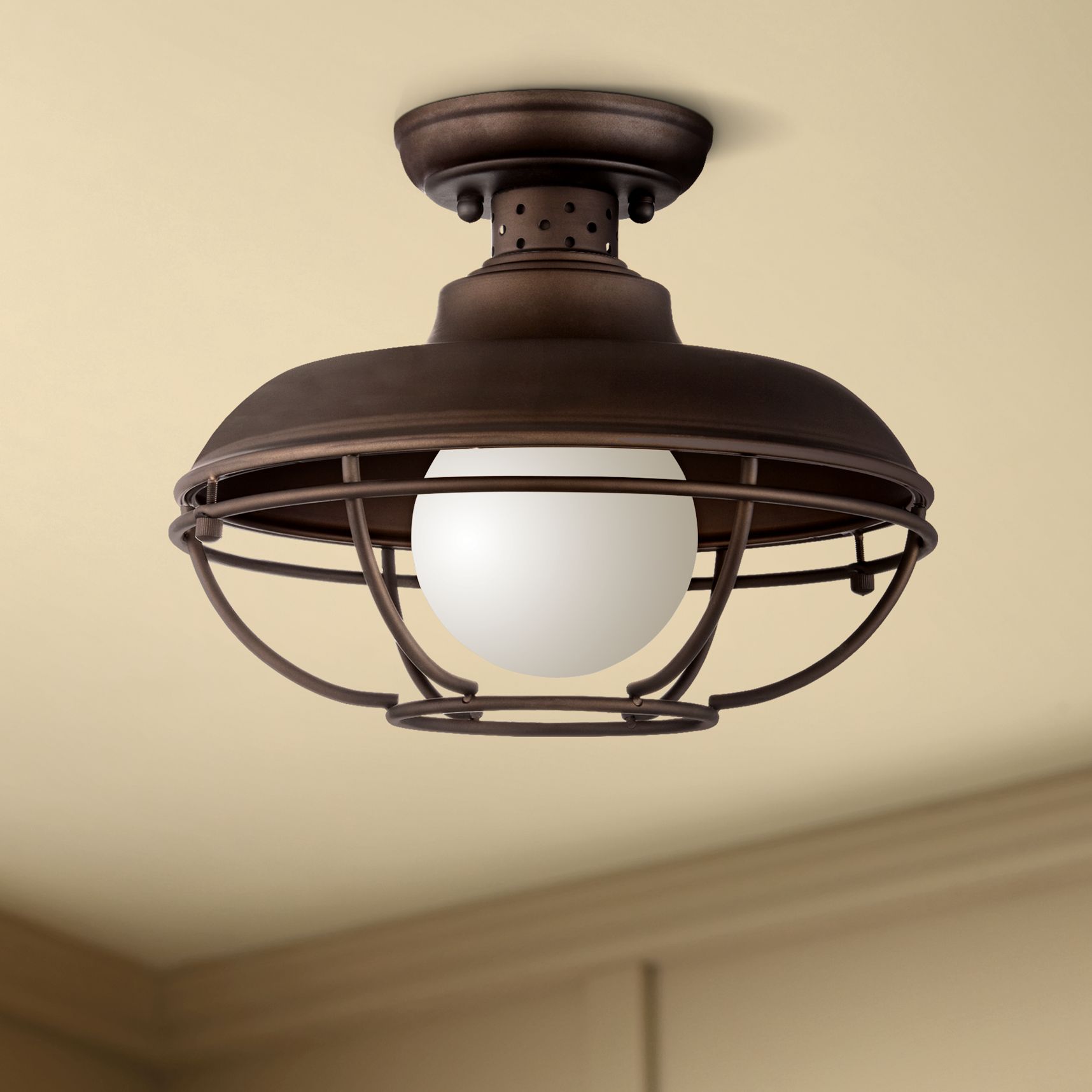 Franklin Park 12" Wide Bronze Metal Cage Ceiling Light
