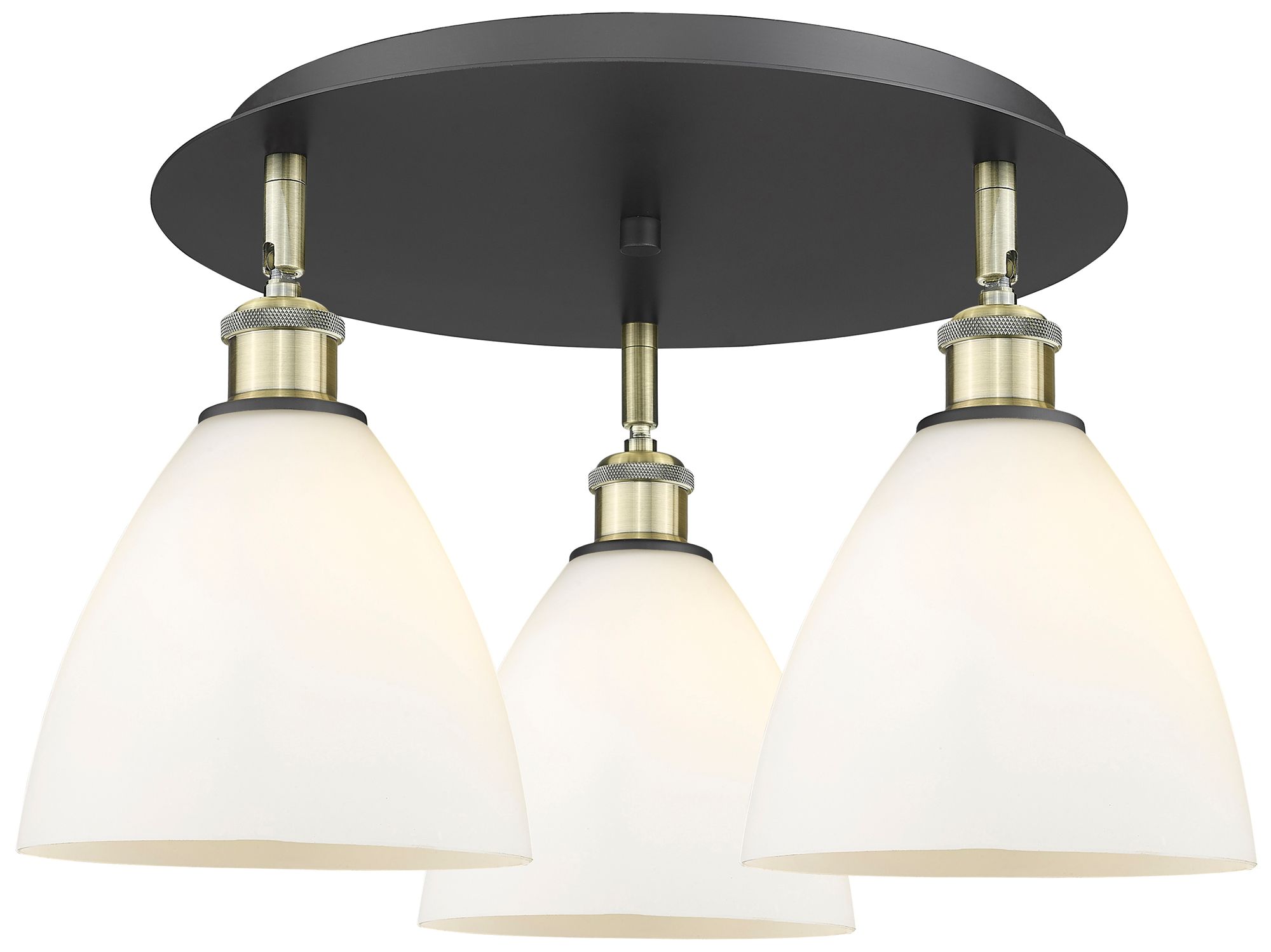 Bristol Glass 19.25"W 3 Light Black Brass Flush Mount w/ White Shade