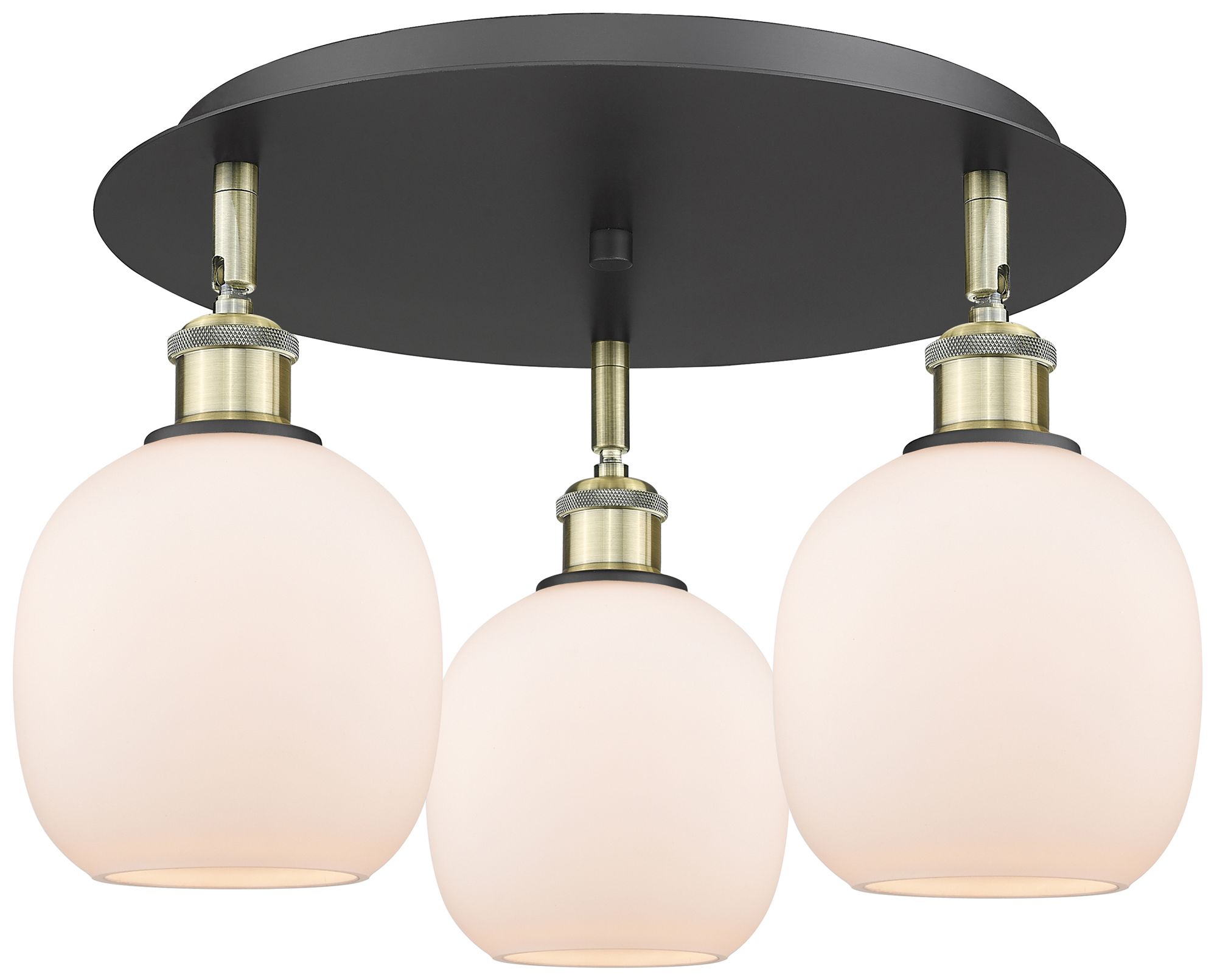 Belfast 17.75"W 3 Light Black Antique Brass Flush Mount w/ White Shade