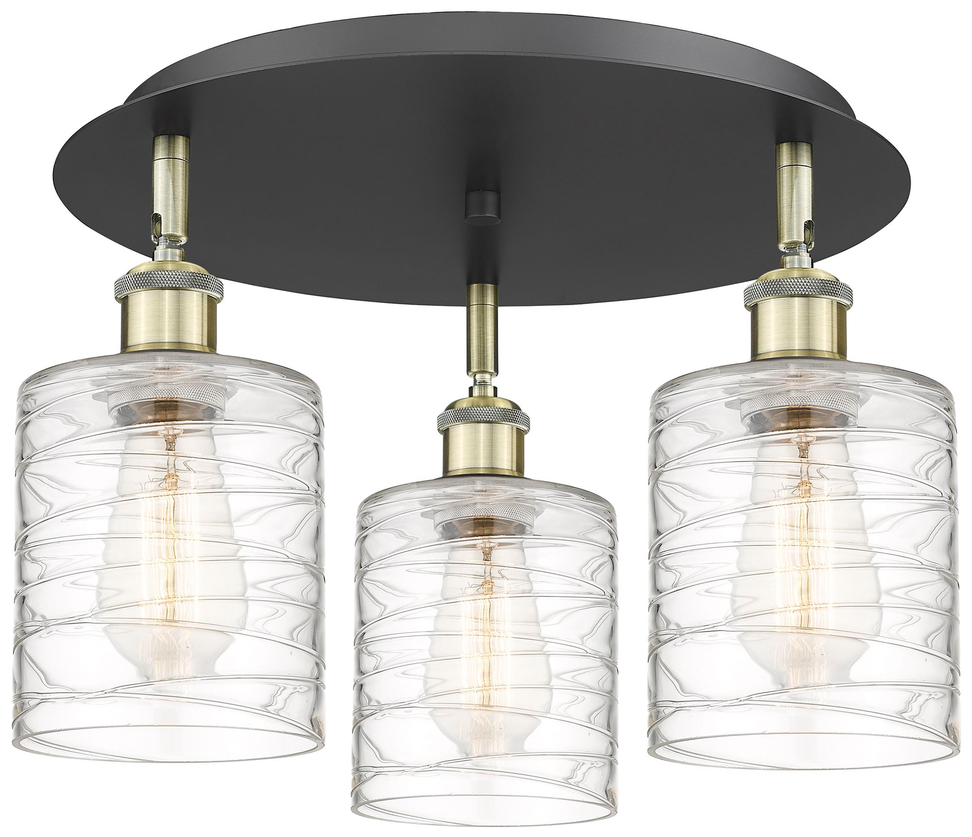 Cobbleskill 17.75"W 3 Light Black Brass Flush Mount w/ Deco Swirl Shad