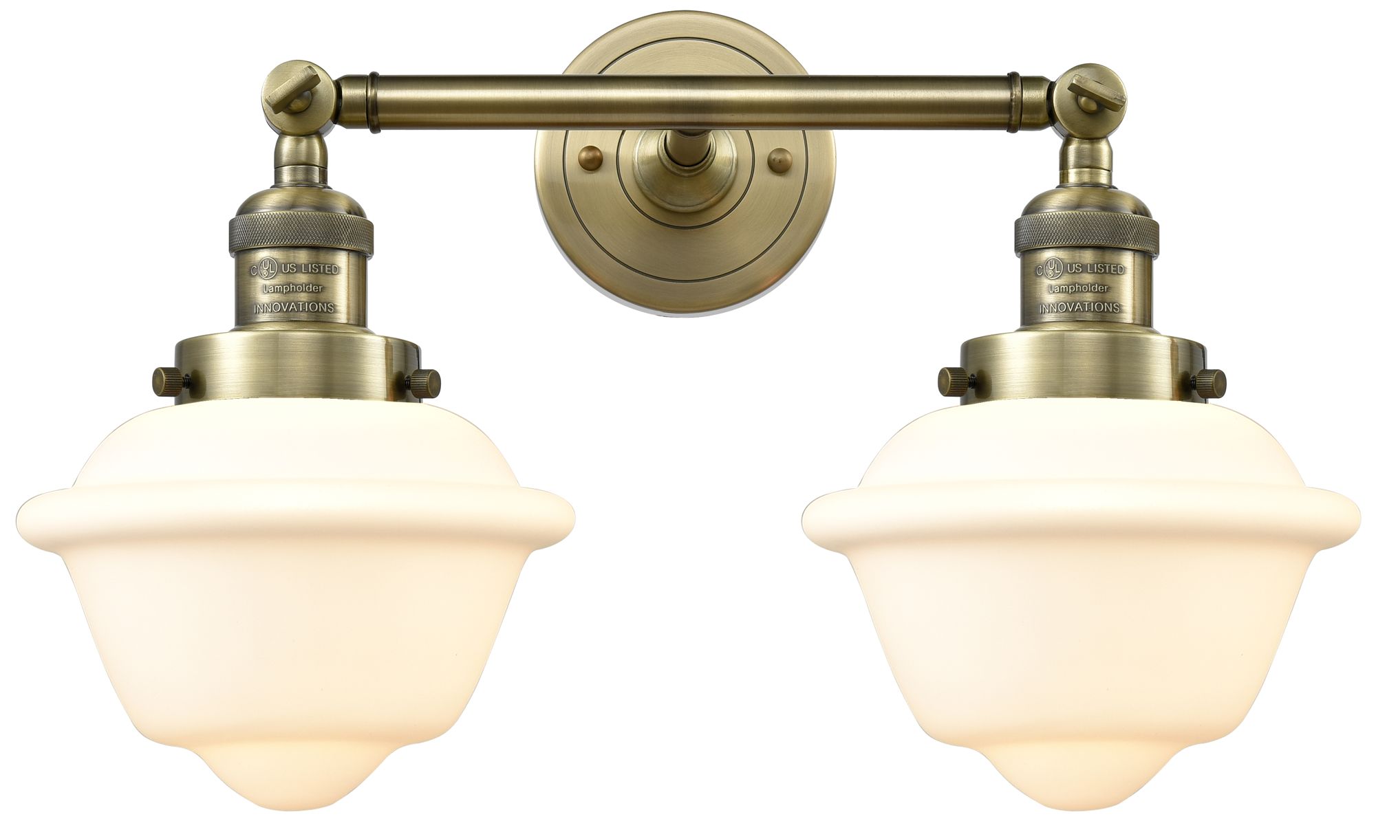 Oxford 17" 2-Light Antique Brass Bath Light w/ Matte White Shade