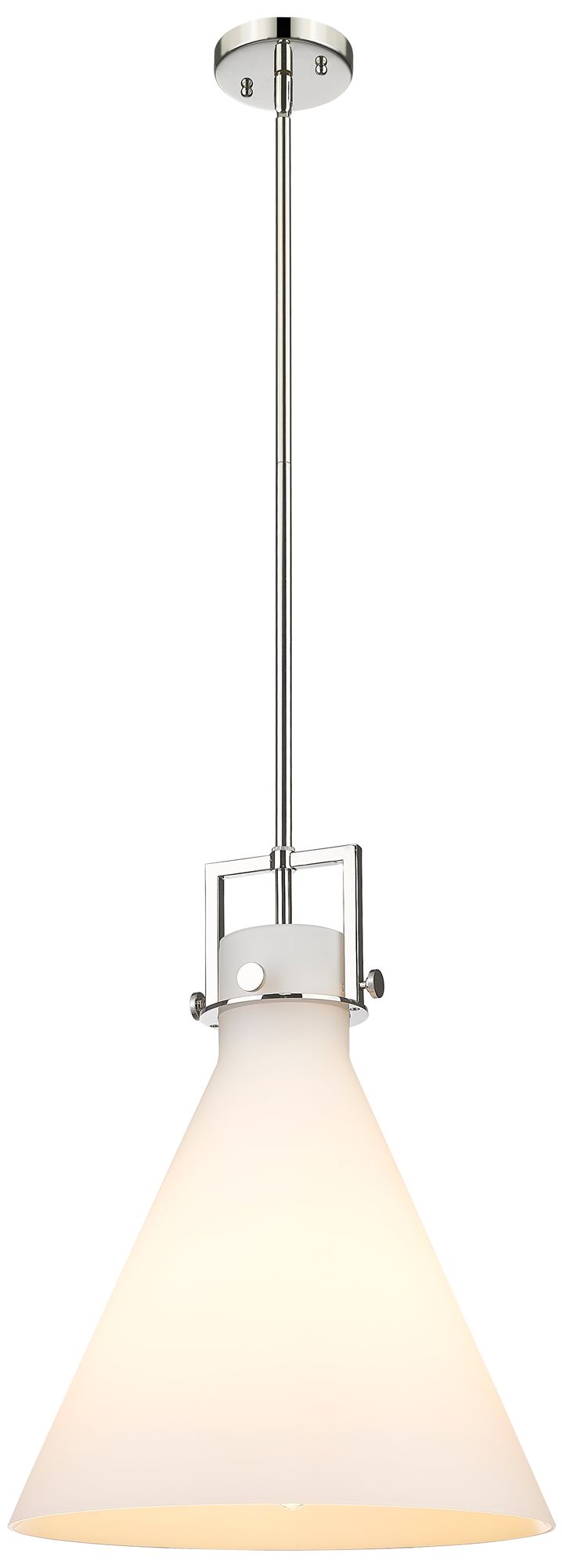 Newton Cone 16" Wide Stem Hung Polished Nickel Pendant With White Shad