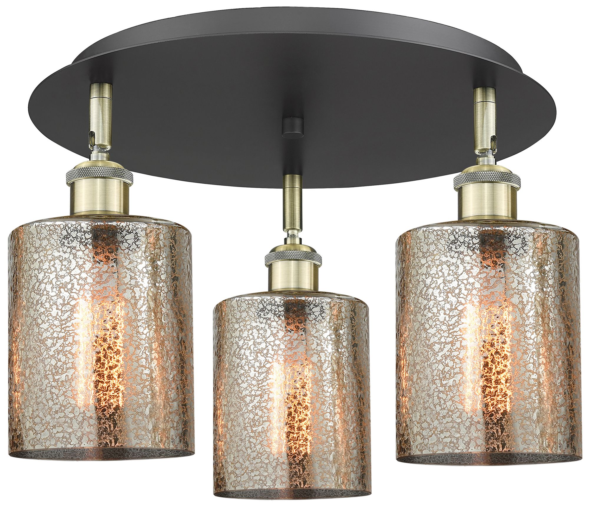 Cobbleskill 17.75"W 3 Light Black Brass Flush Mount w/ Mercury Shade