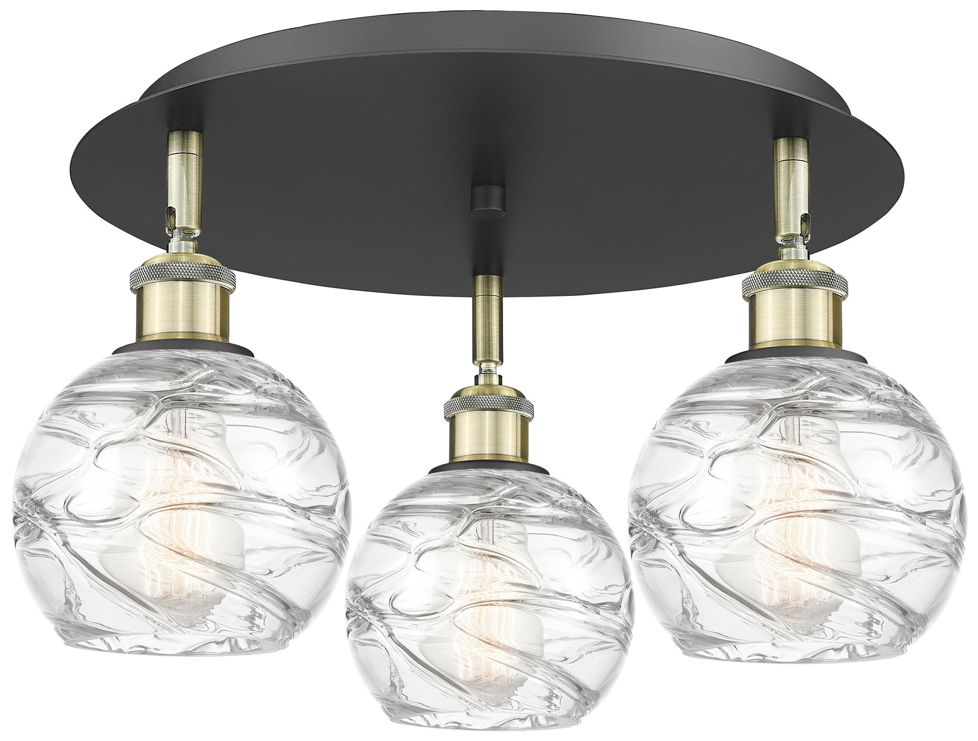 Athens 17.63"W 3 Light Black Antique Brass Flush Mount w/ Deco Swirl S