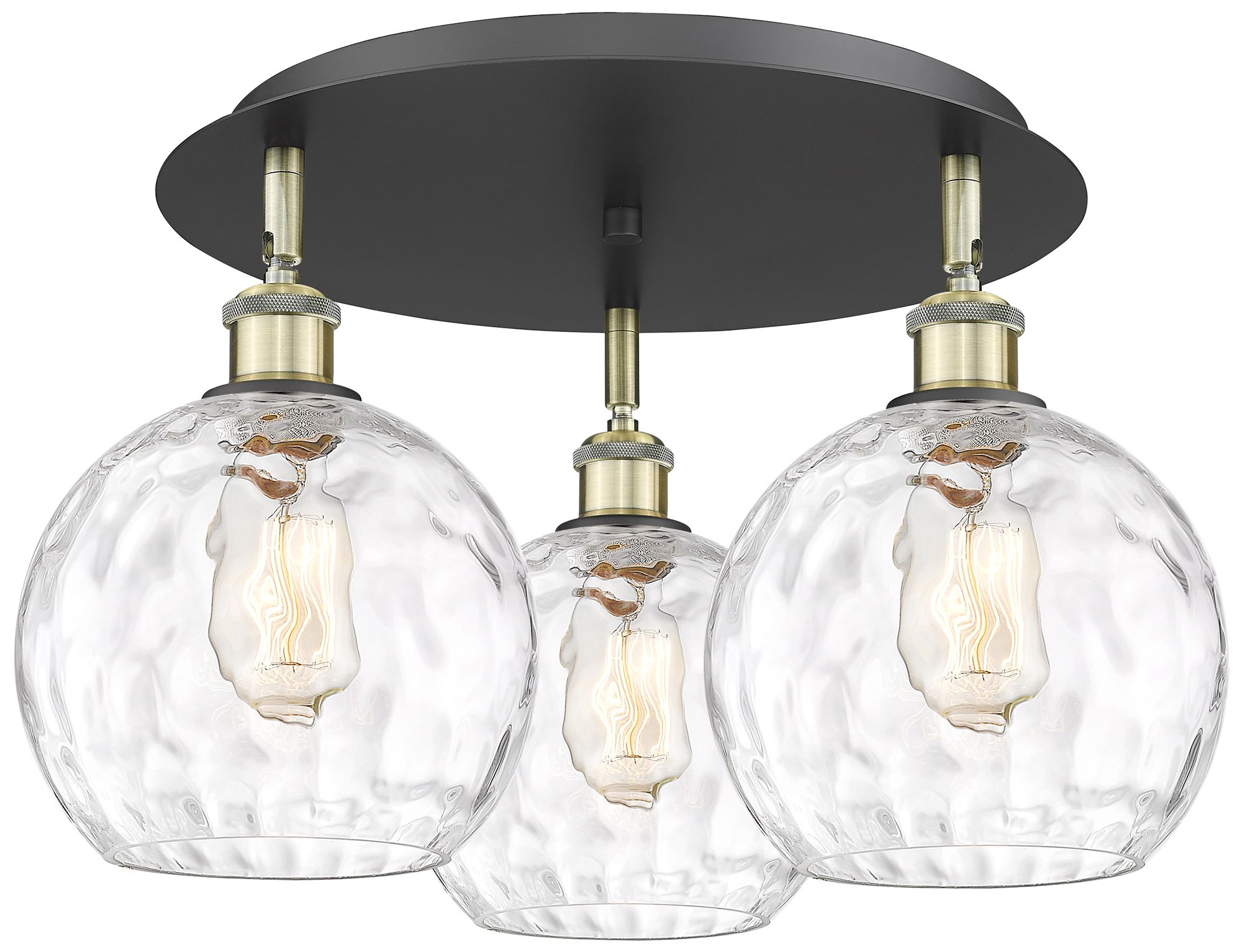 Athens 19.75"W 3 Light Black Antique Brass Flush Mount w/ Water Glass