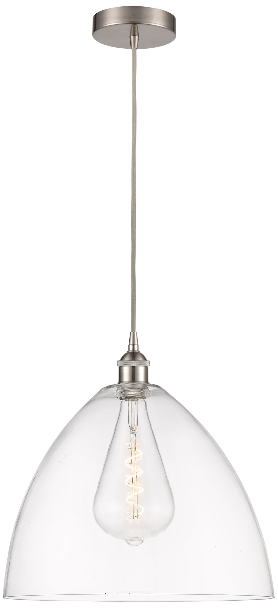 Edison Dome 16" Brushed Satin Nickel Cord Hung Pendant w/ Clear Shade