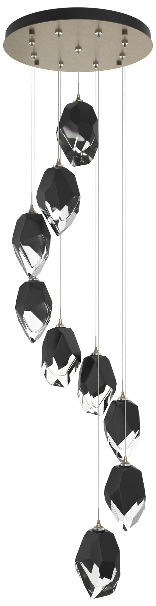 Chrysalis 20.5"W 9-Light Large Black Crystal Soft Gold Long Pendant