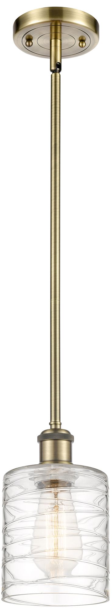 Ballston Cobbleskill 5" Antique Brass Mini Pendant w/ Deco Swirl Shade