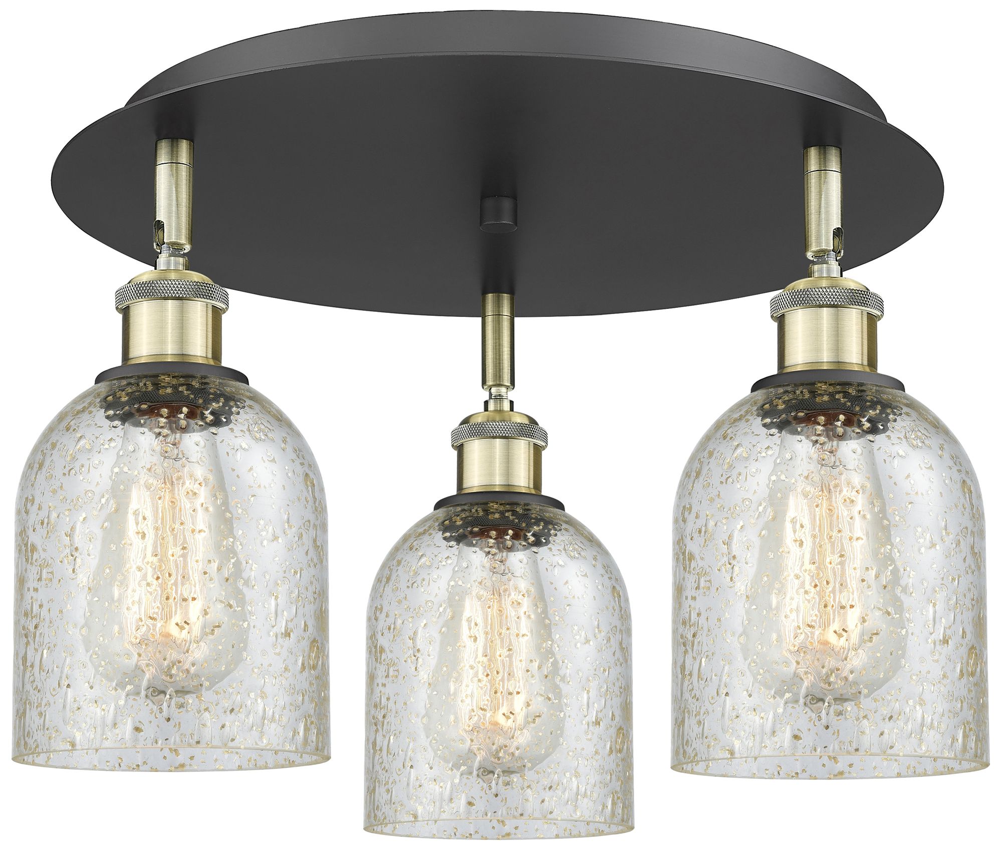 Caledonia 16.75"W 3 Light Black Antique Brass Flush Mount w/ Mica Shad