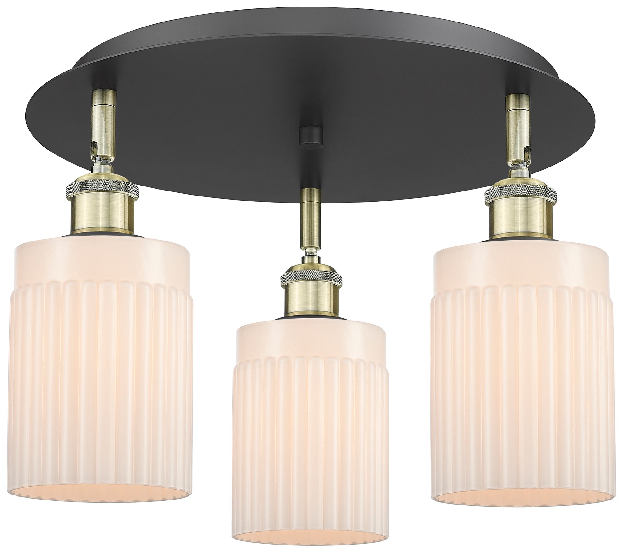 Hadley 16.25"W 3 Light Black Antique Brass Flush Mount w/ White Shade