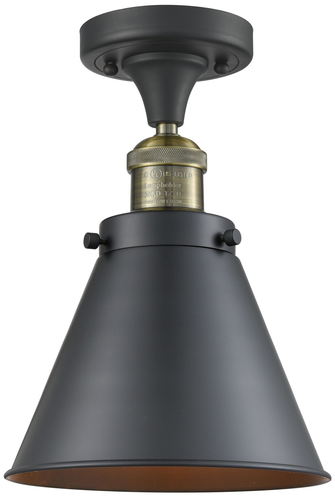 Appalachian 8" Black Antique Brass Semi Flush Mount w/ Matte Black Sha
