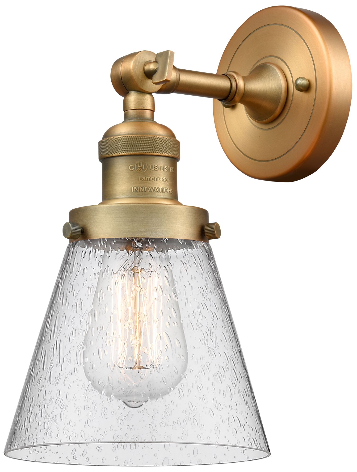 Franklin Restoration Cone 6" LED Sconce - Brass Finish - Seedy Shade
