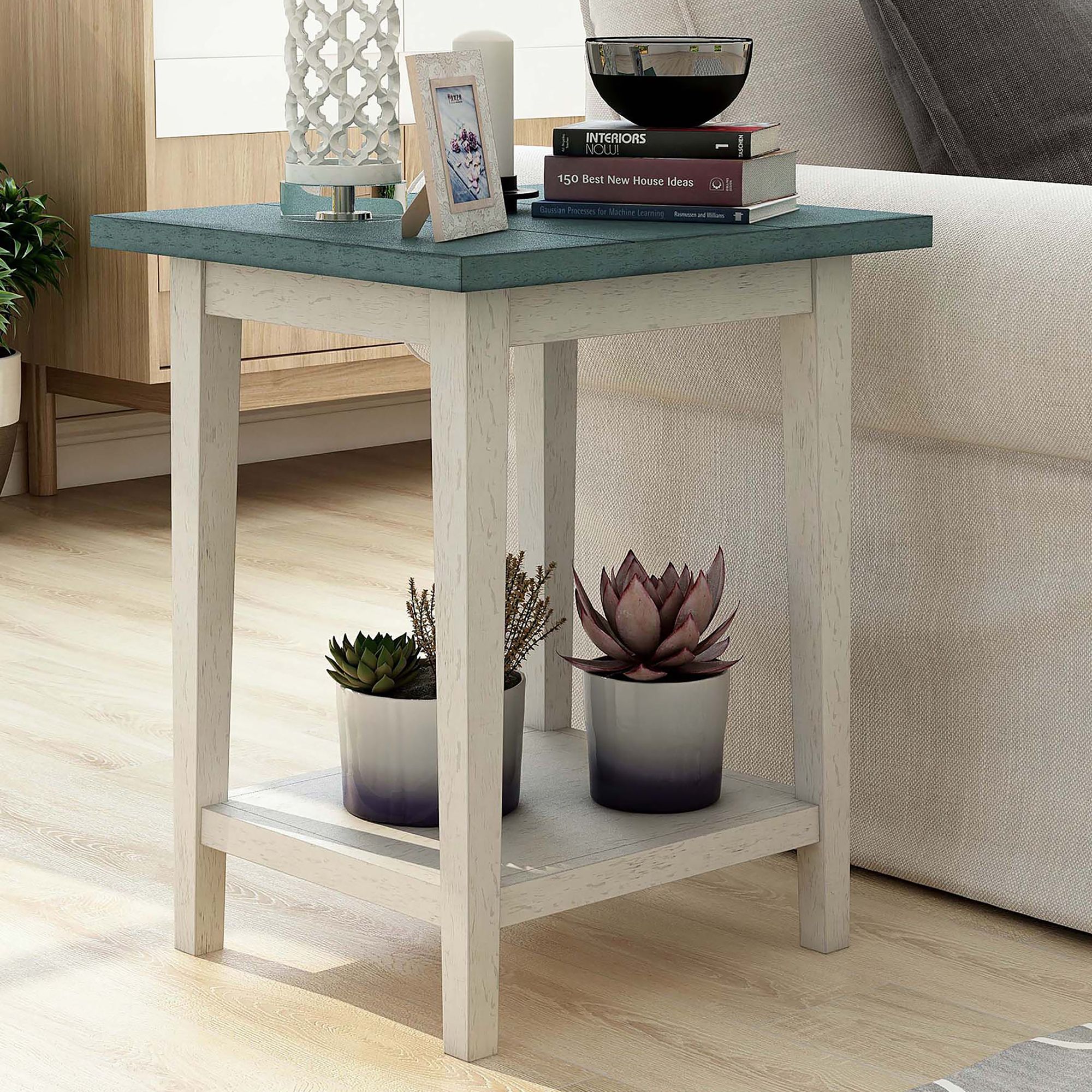 Himian 19 3/4"W Light Green Antique White Wood End Table