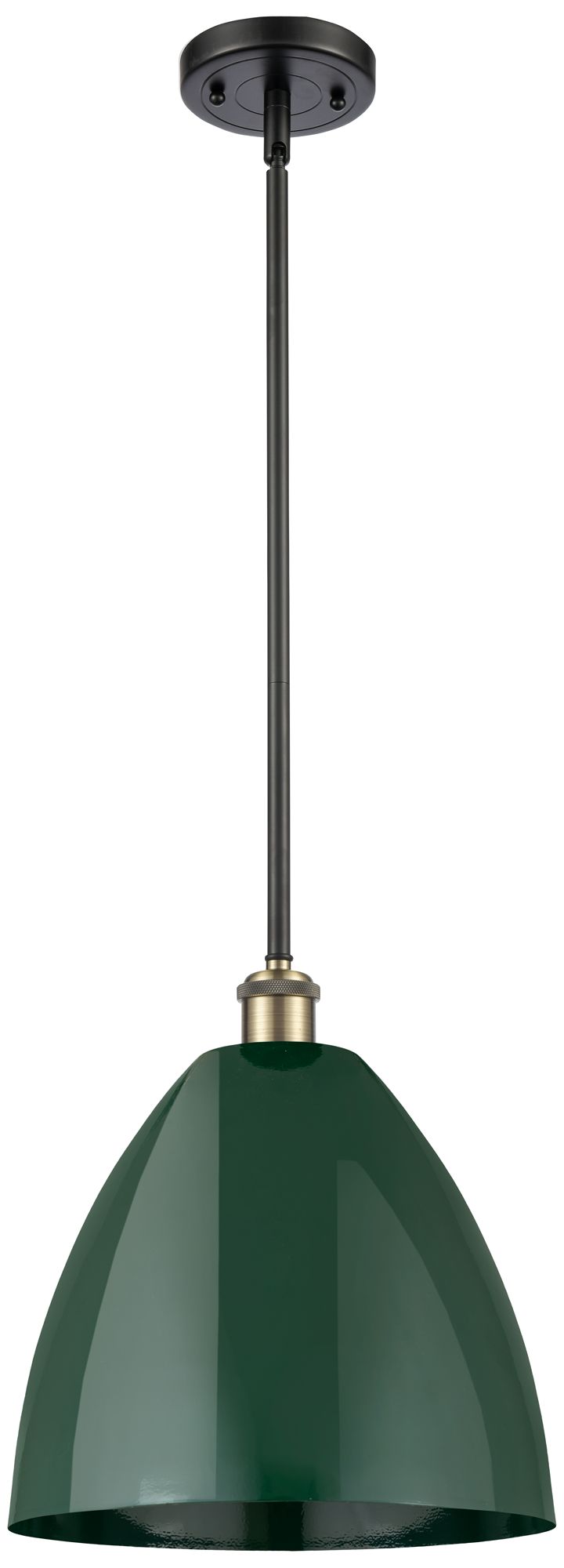 Plymouth Dome 12" Wide Black Brass Stem Hung Pendant w/ Green Shade