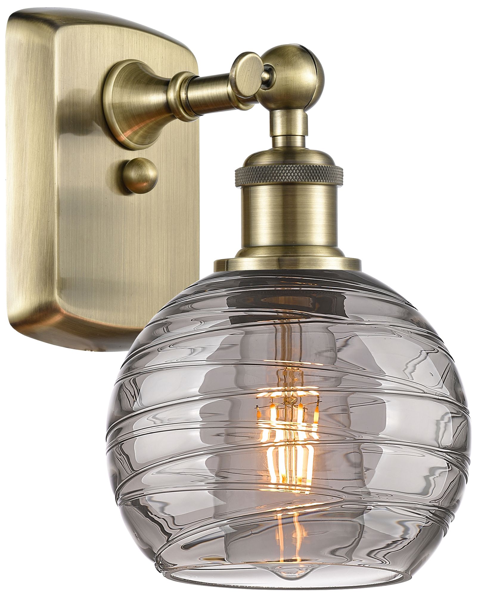 Ballston Athens 9.13"H Antique Brass Sconce w/ Light Smoke Deco Swirl