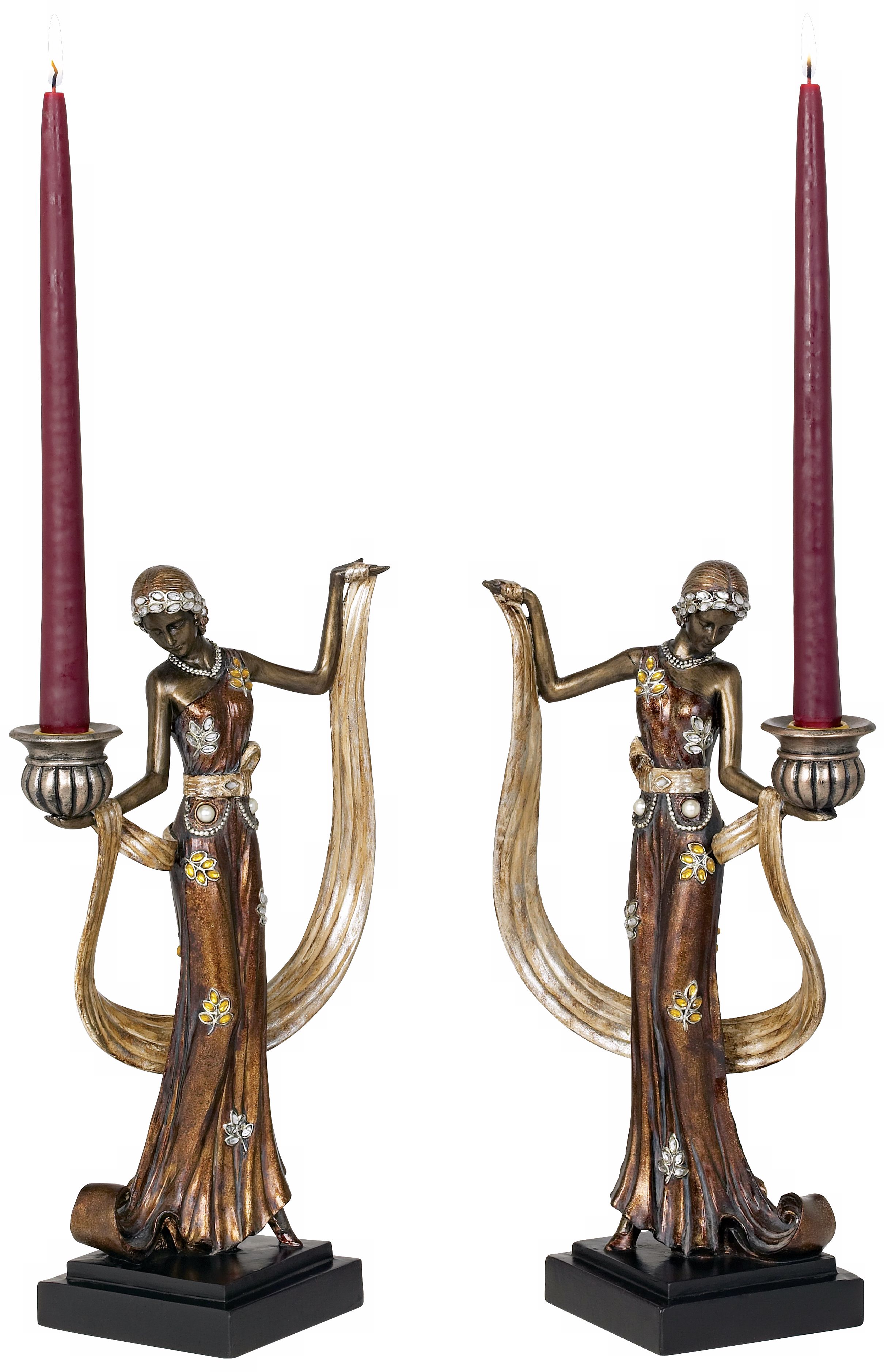 Art Deco Lady 14" High Taper Candle Holders - Set of 2