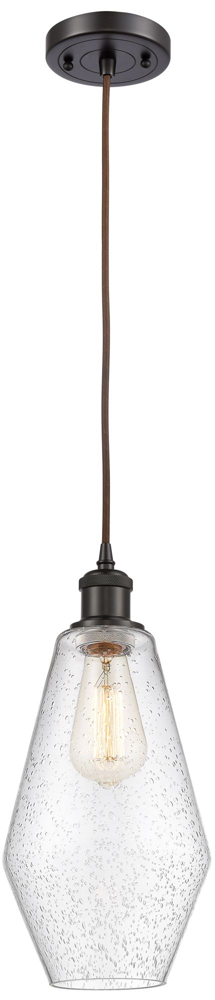 Ballston Cindyrella 7" Wide Bronze Corded Mini Pendant w/ Seedy Shade