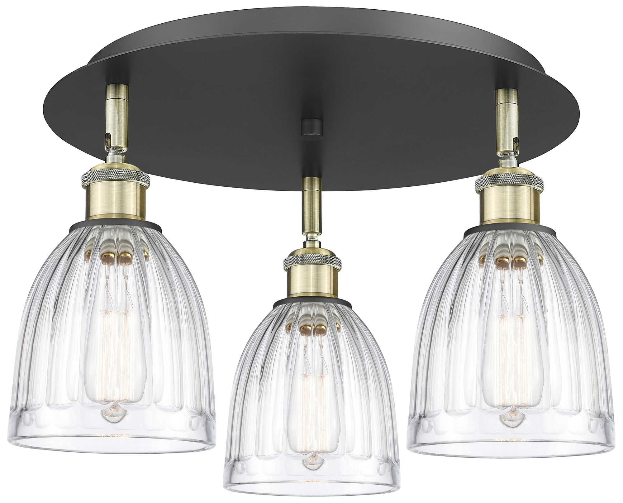 Brookfield 17.5"W 3 Light Black Antique Brass Flush Mount w/ Clear Sha