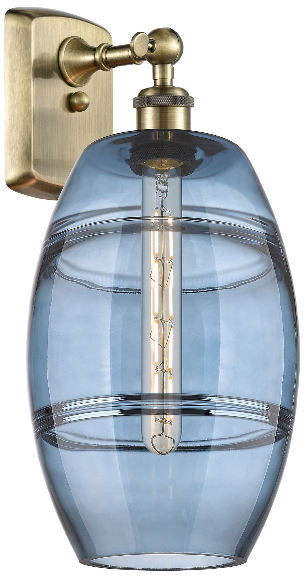Ballston Vaz 10.88" High Antique Brass Sconce With Princess Blue Shade