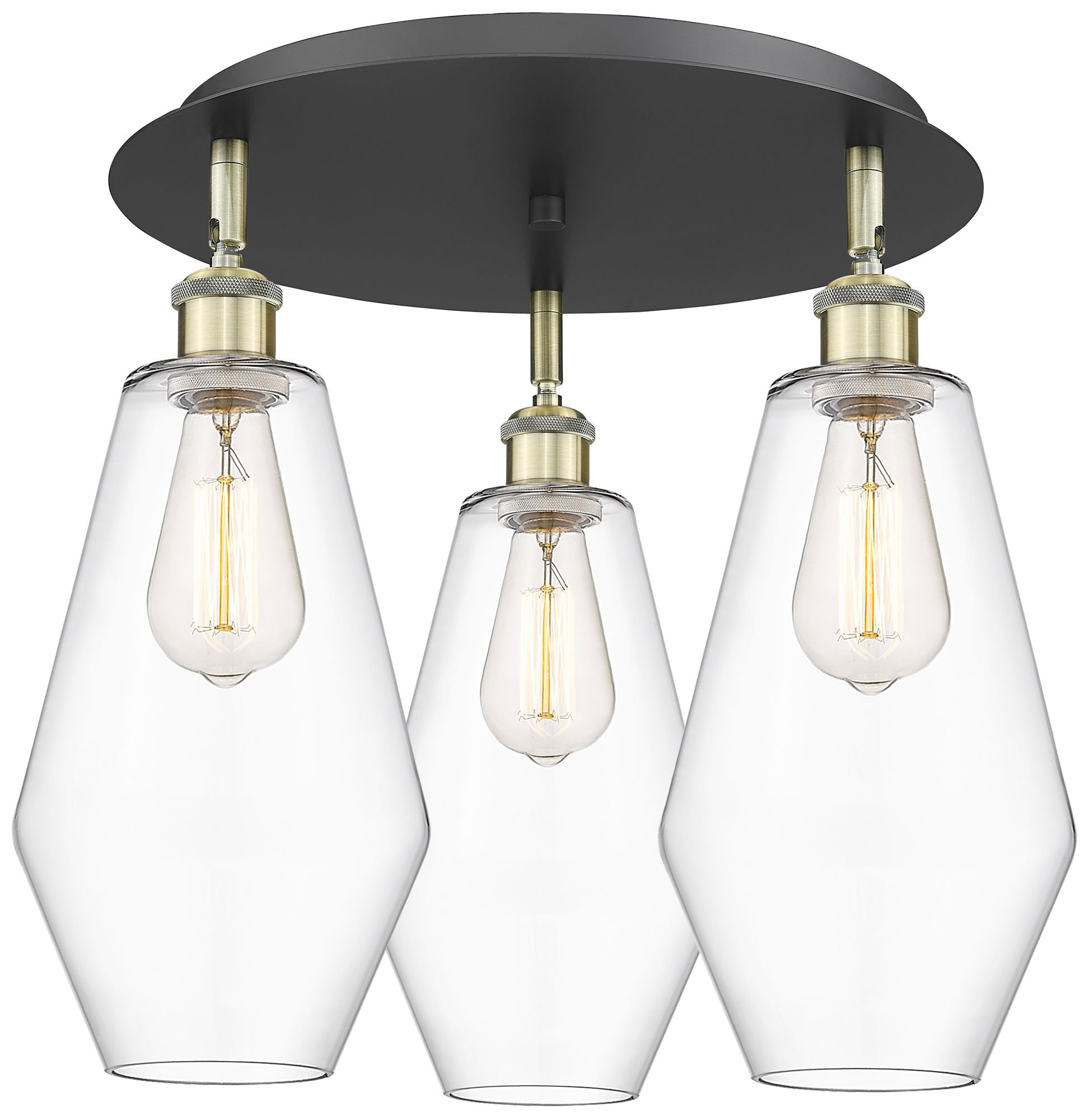 Cindyrella 18.75"W 3 Light Black Antique Brass Flush Mount w/ Clear Sh