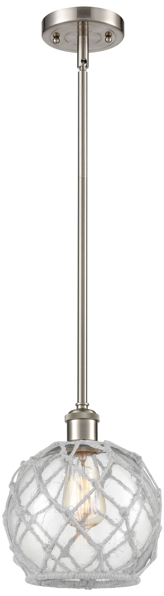 Farmhouse 8"W Stem Hung Satin Nickel Mini Pendant w/ Clear and White S
