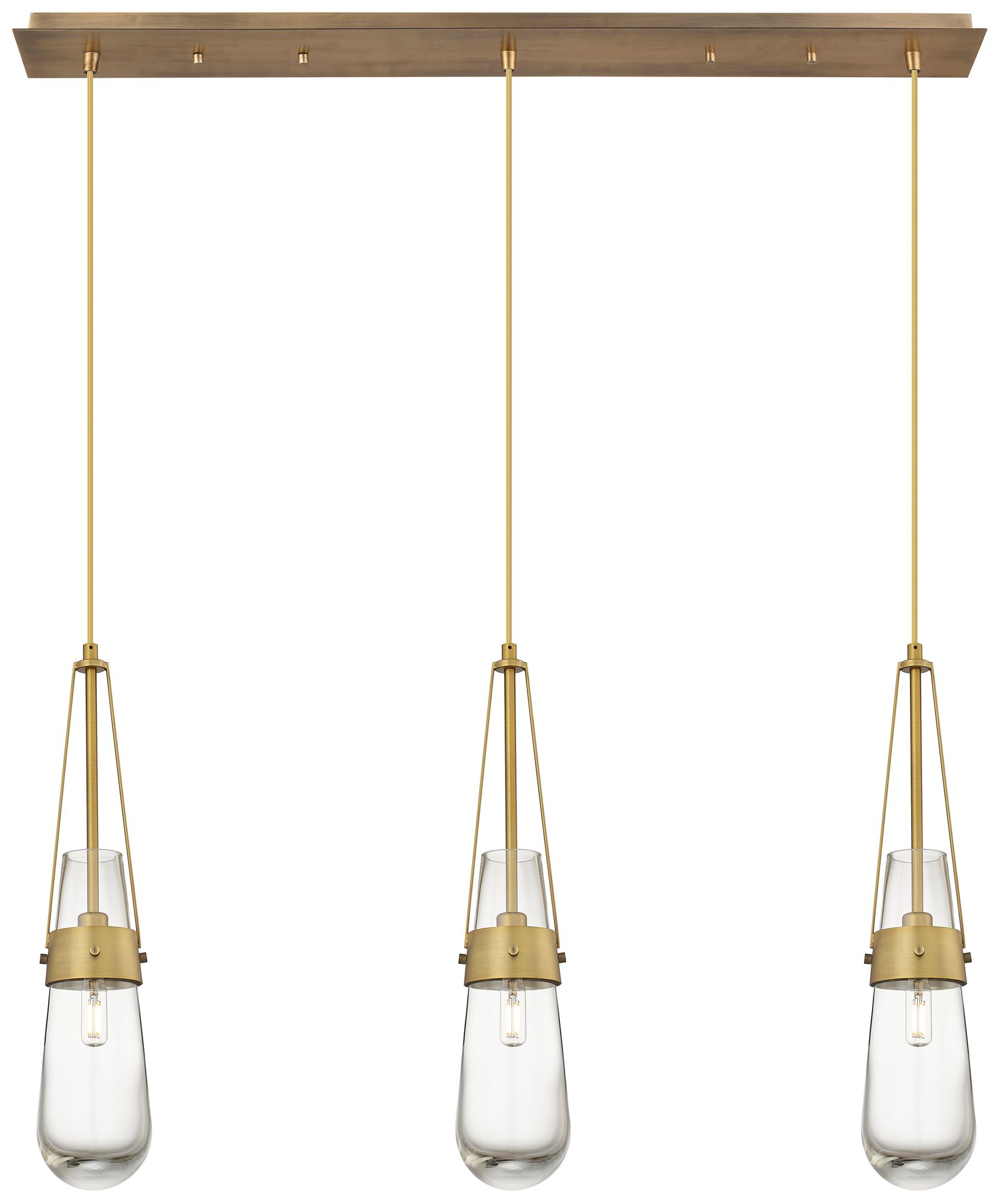 Milan 48.13"W 7 Light Brushed Satin Nickel Linear Pendant w/ Clear Sha