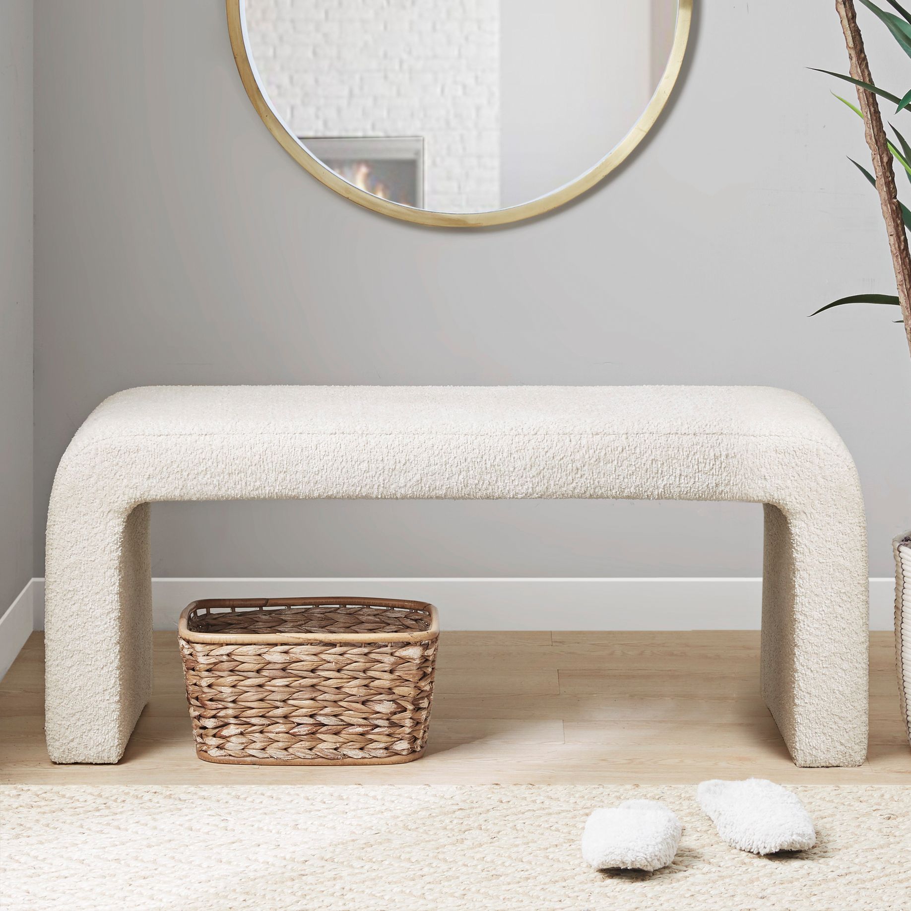 INK+IVY Steve 42" Wide Cream Boucle Waterfall Accent Bench