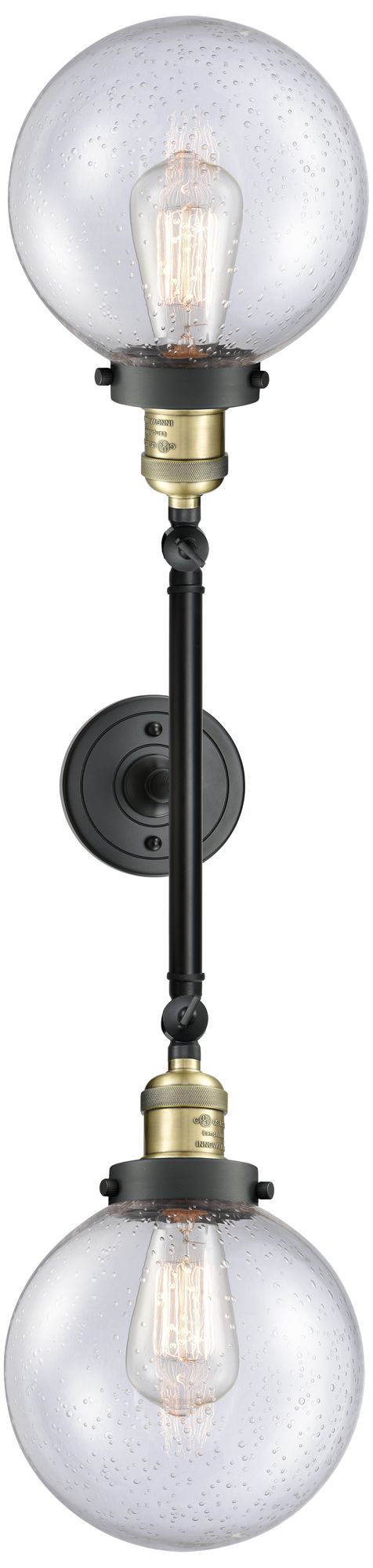 Beacon 8" Wide 2 Light Black Brass Bath Vanity Light w/ Seedy Shade