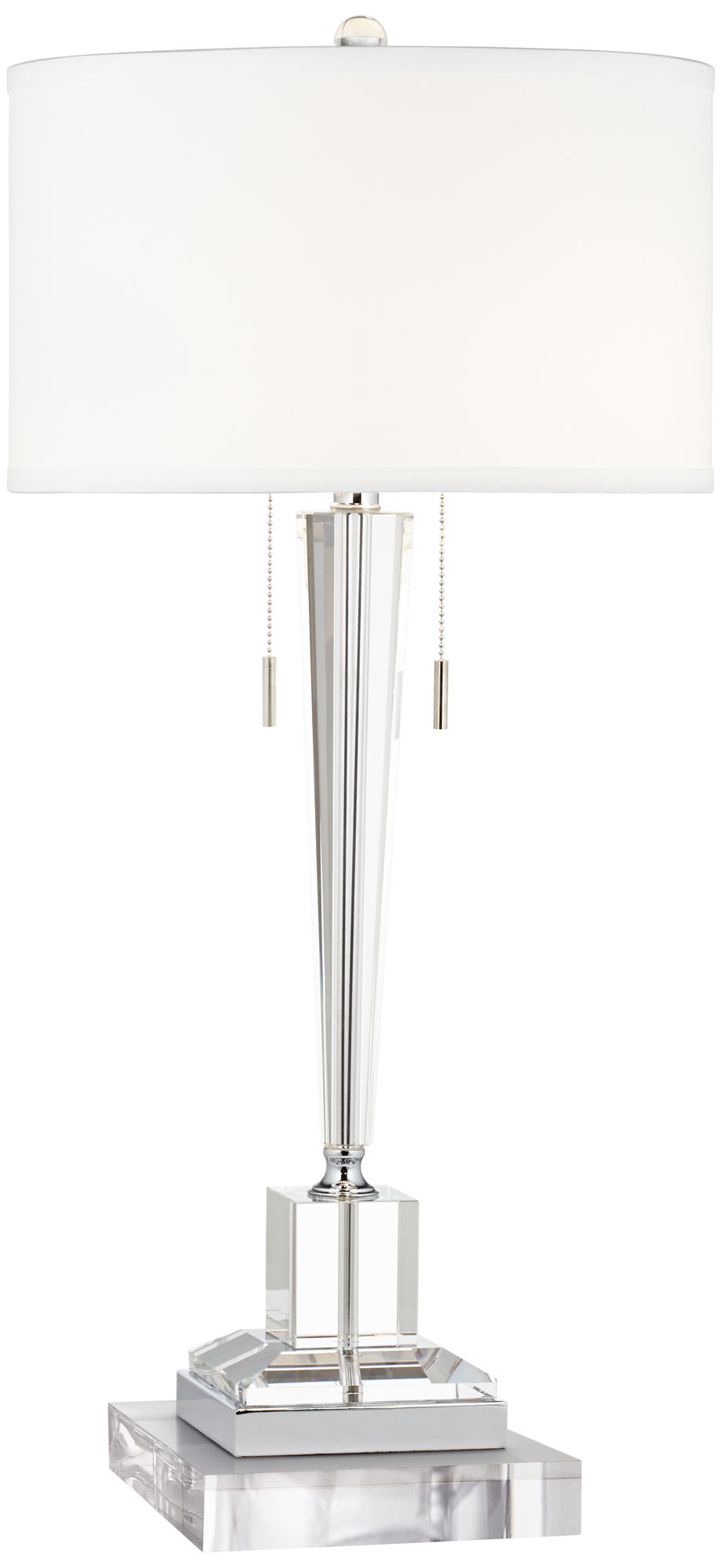 Renee Clear Crystal Glass Table Lamp With 8" Wide Square Riser