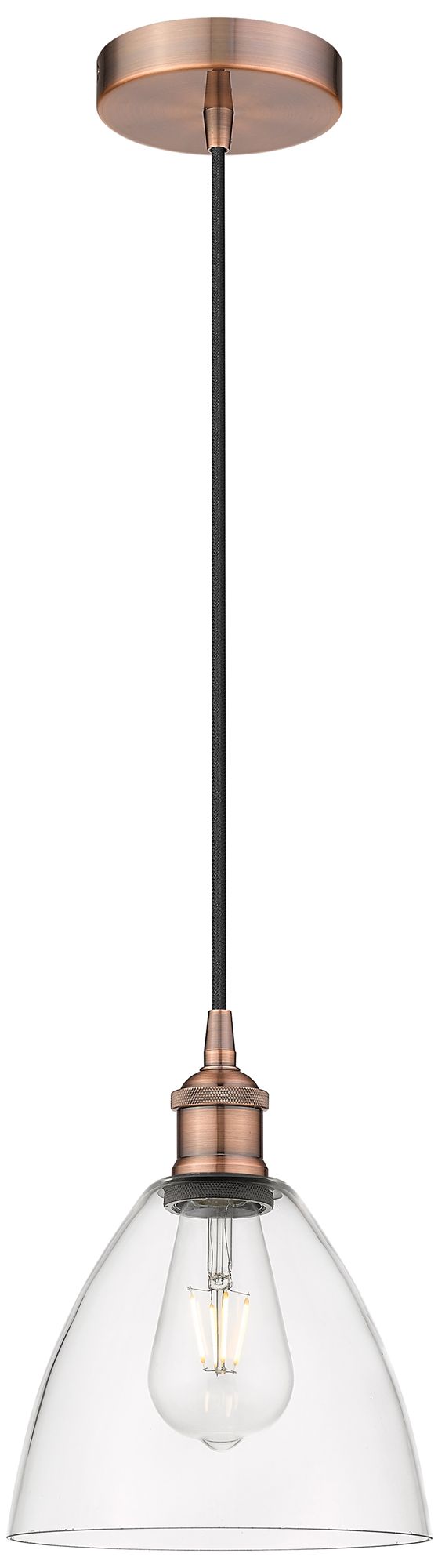 Edison Dome 8" Antique Copper Cord Hung Mini Pendant w/ Clear Shade