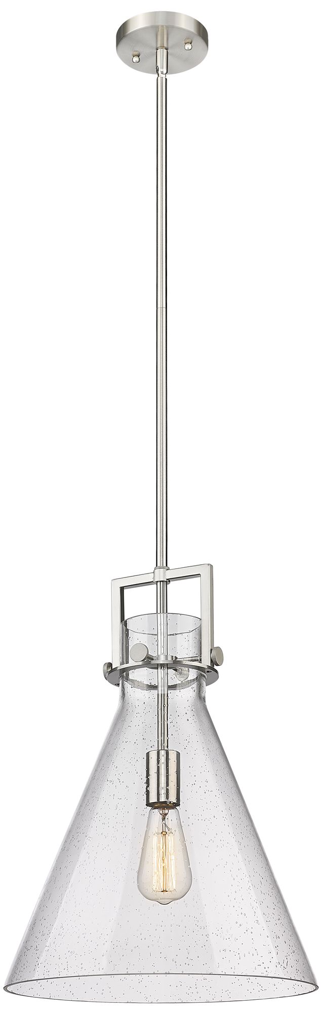 Newton Cone 14" Wide Stem Hung Satin Nickel Pendant With Seedy Shade