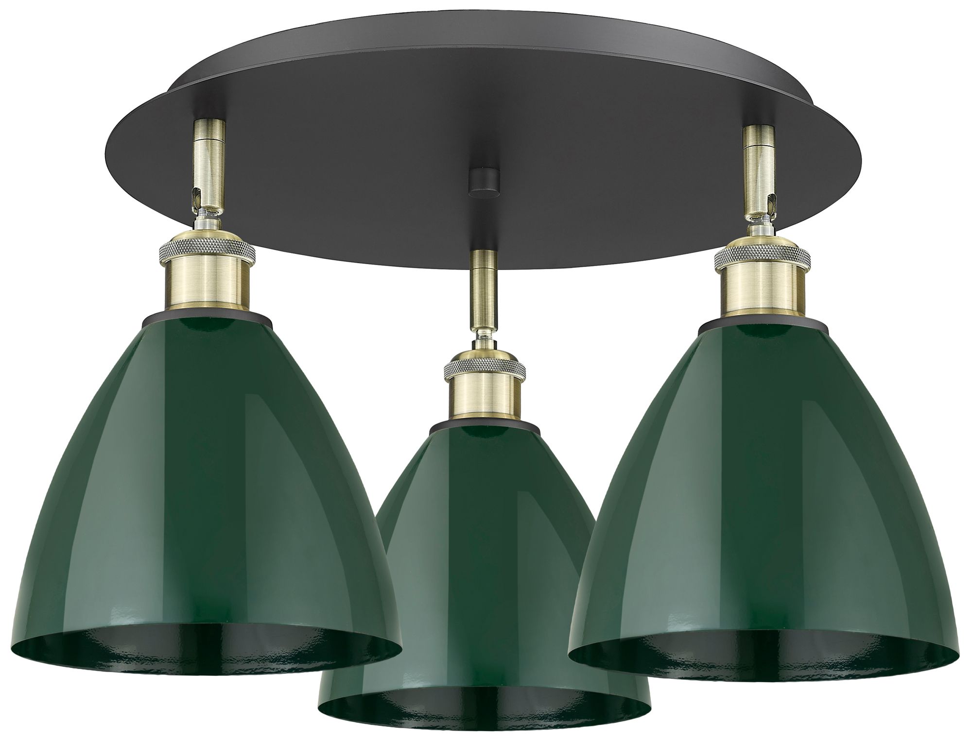 Ballston Dome 19.25"W 3 Light Black Brass Flush Mount w/ Green Shade