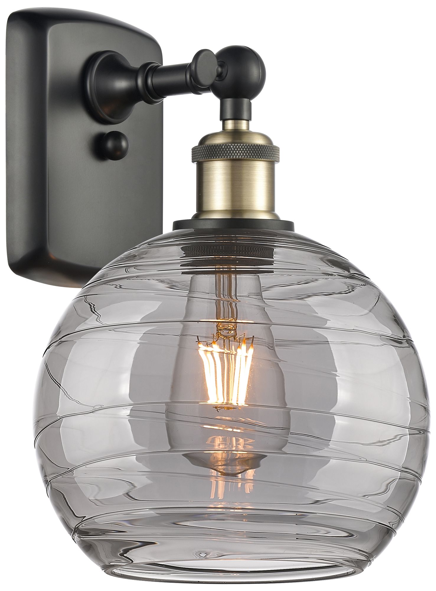 Ballston Athens 10.88"H Black Antique Brass Sconce w/ Smoke Swirl Shad