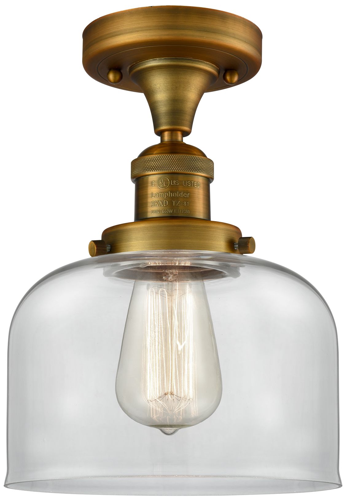 Bell 8" Brushed Brass Semi Flush Mount w/ Clear Shade