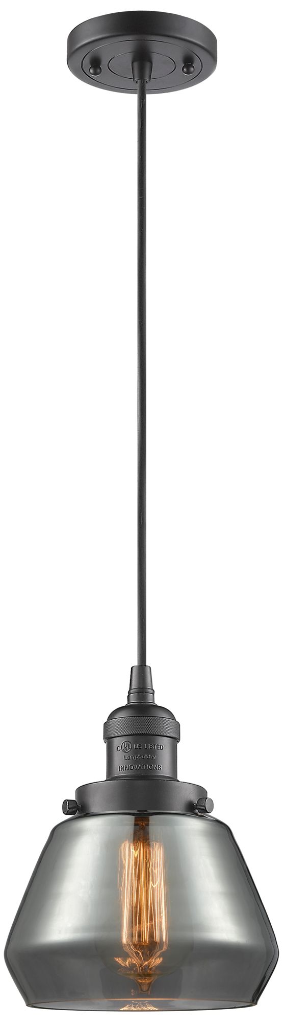 Fulton 7" Oil Rubbed Bronze Cord Hung Mini Pendant w/ Plated Smoke Sha