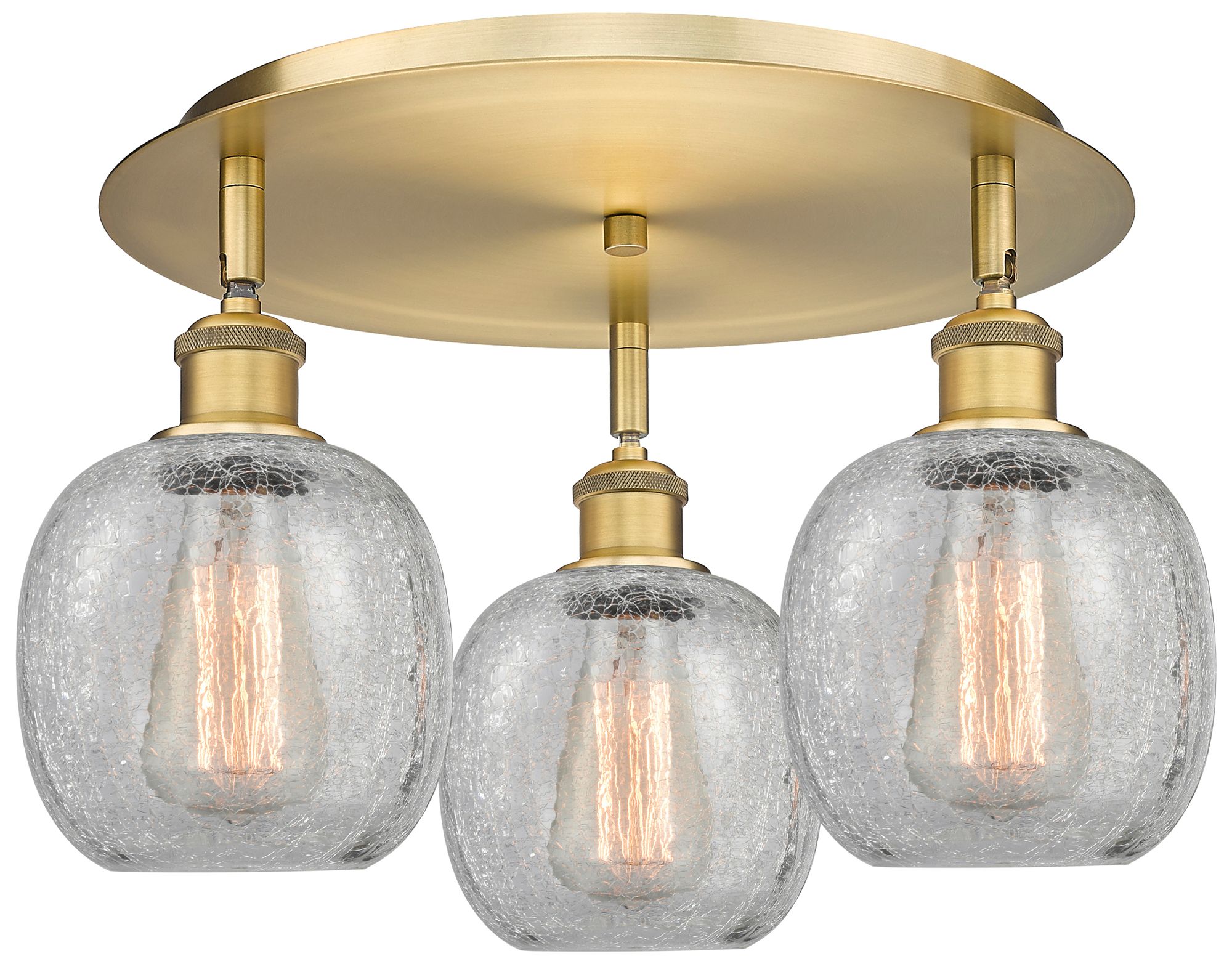 Belfast 17.75"W 3 Light Brushed Brass Flush Mount w/ Crackle Glass Sha