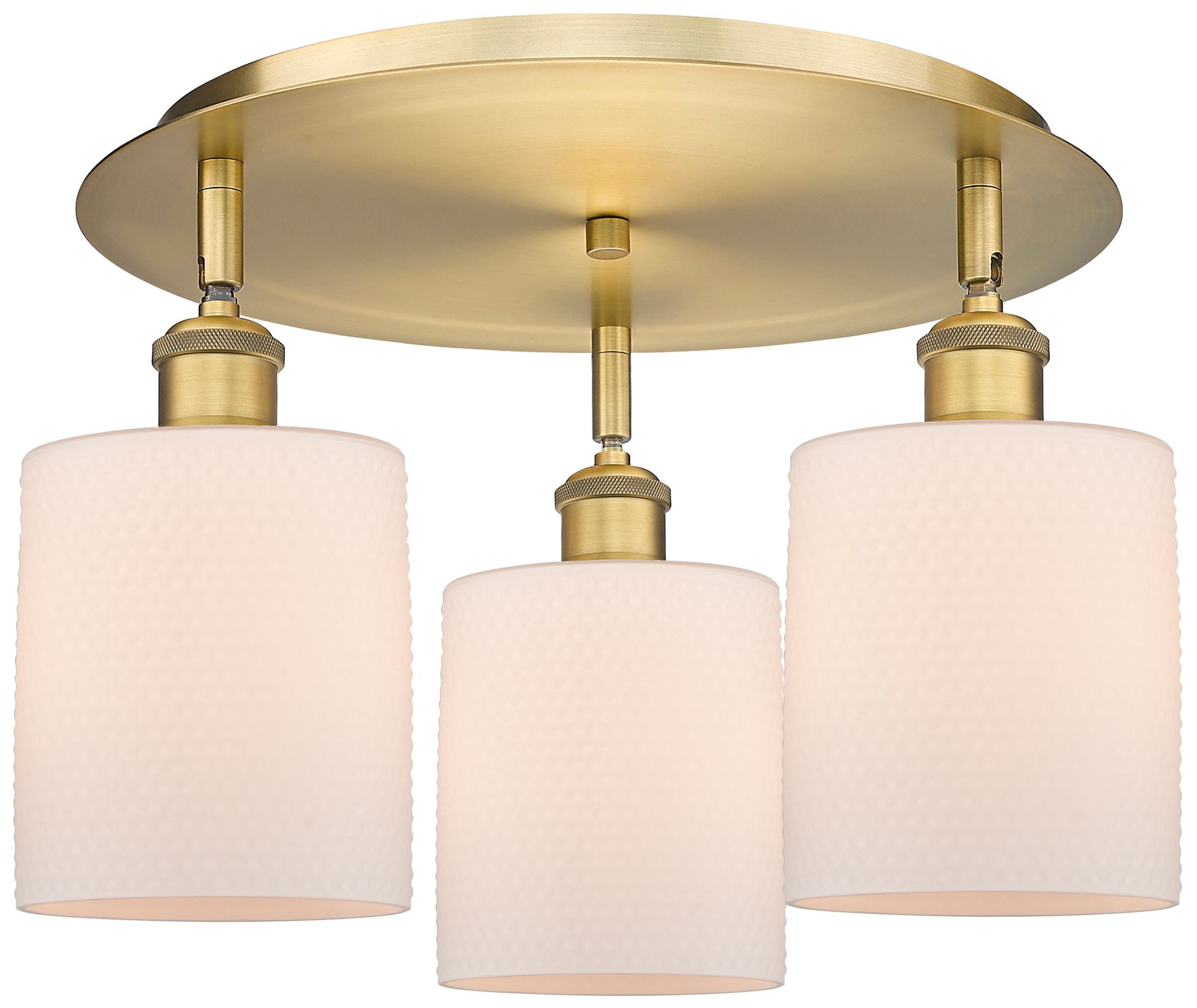 Cobbleskill 17.75"W 3 Light Brushed Brass Flush Mount w/ White Shade