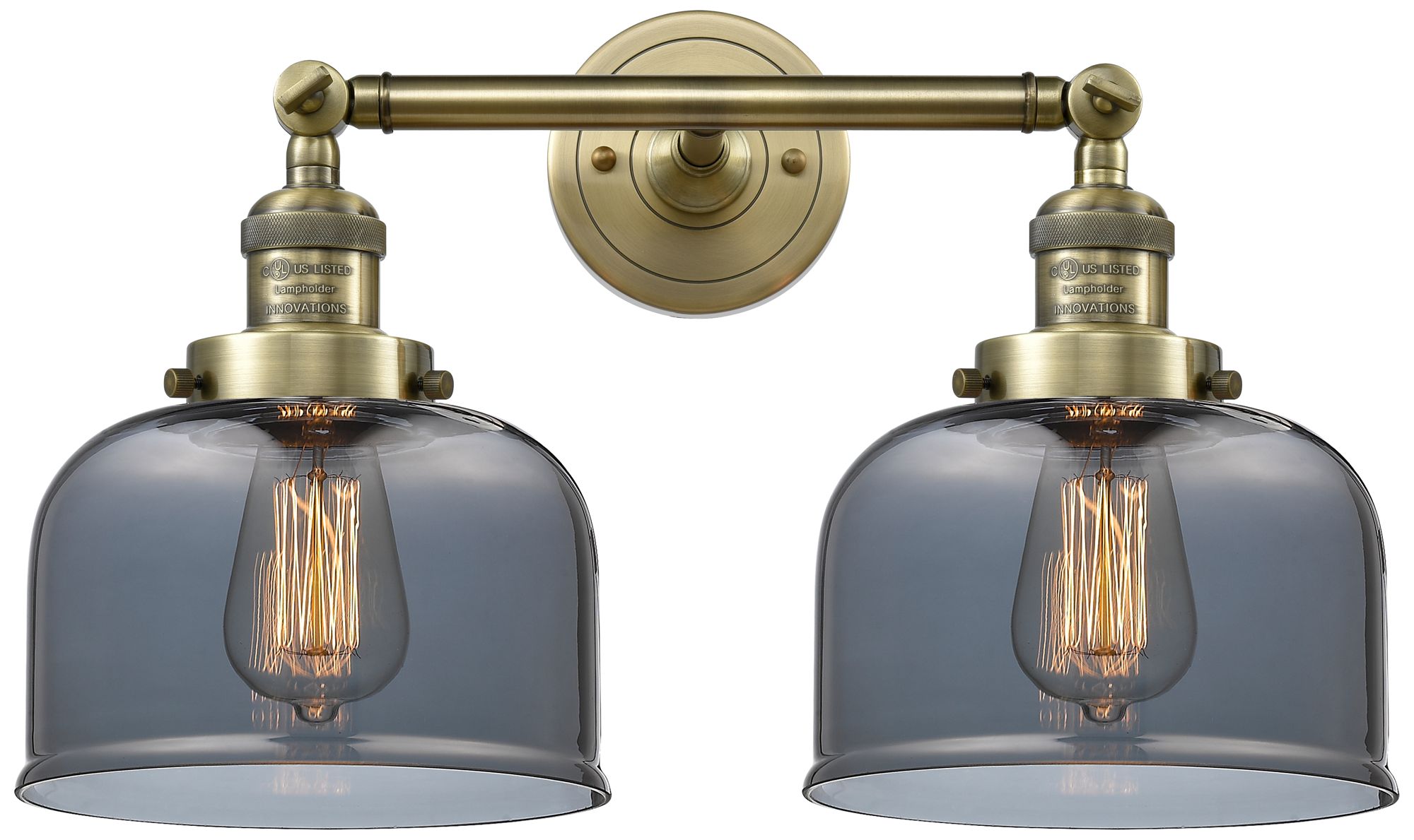 Bell 19" 2-Light Antique Brass Bath Light w/ Plated Smoke Shade
