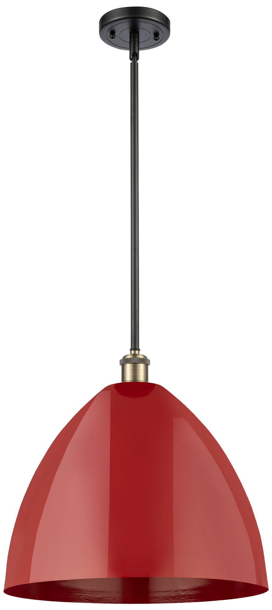 Plymouth Dome 16" Wide Black Brass Stem Hung Pendant w/ Red Shade